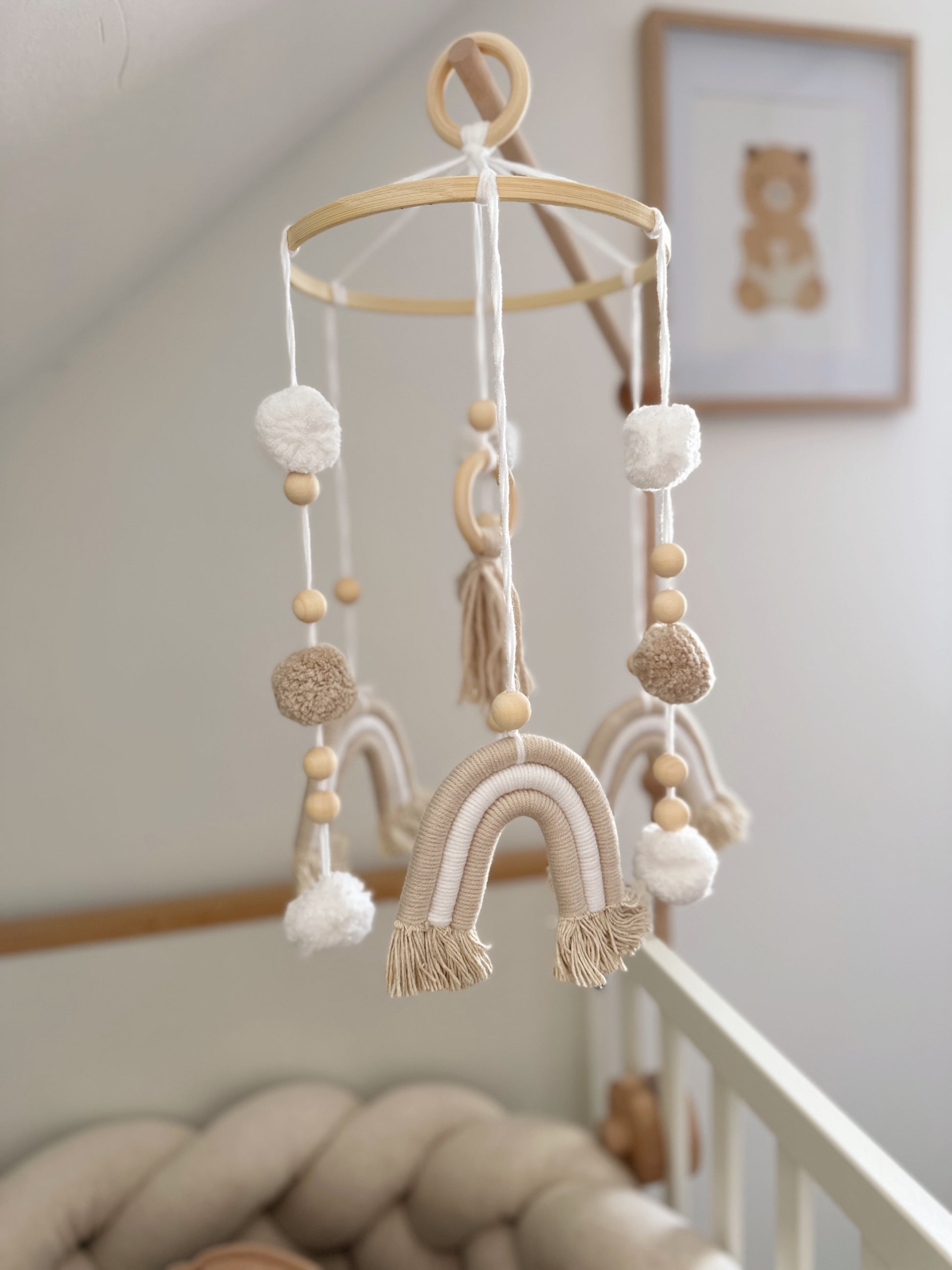 Babymobile mit Regenborgen in Bohoo style